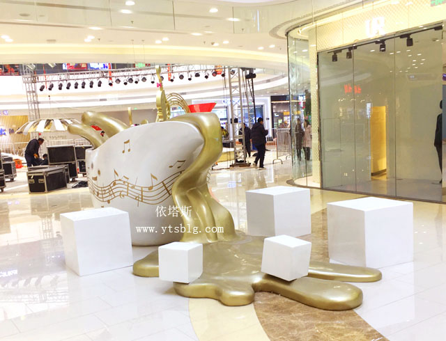 ? ? ? ? 這次依塔斯為銀川新華聯(lián)商場陳列出一段美好休閑的時光,DP點玻璃鋼咖啡杯雕塑美陳裝飾型號為DS422,咖啡杯杯體長3.2米,咖啡流動狀裝飾長1.6米,整體長為4.8米,高1.8米,寬度按比例制作,咖啡杯整體采用高品質(zhì)玻璃鋼制作而成,噴濺流動型藝術(shù)造型達到動感逼真效果,表面彩繪五線譜音符圖做亮光效果,整個作品彰顯了商場時尚、品味、休閑的氛圍。