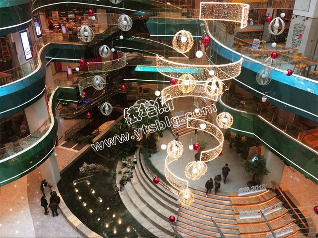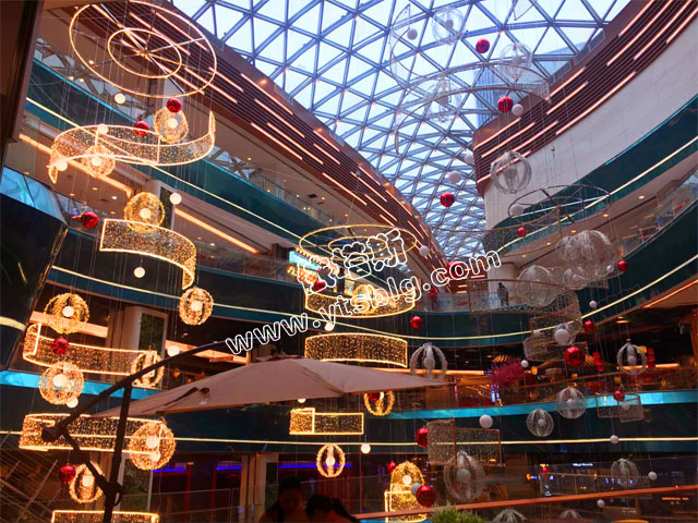 該商場于2017年12月29日正式開業(yè),開業(yè)當(dāng)天人潮涌動,場面十分轟動。商場一共8層,場內(nèi)所有的開業(yè)美陳裝飾項(xiàng)目都由深圳依塔斯全力打造。下面讓我們一起來欣賞該商場的中庭裝飾效果: