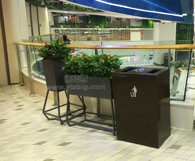 ? ? 這組極具幾何感的花盆,主體花槽部分尺寸設(shè)計(jì)偏小,鏤空的鐵制腳支撐,不但節(jié)省材料而且整體給人輕盈感與時(shí)尚感。冷靜的灰色搭配翠綠的盆栽給人滿滿的清新,別具一格的設(shè)計(jì)無(wú)不體現(xiàn)商場(chǎng)的現(xiàn)代感。它們既是花盆用來(lái)凈化和美化環(huán)境,本身也是藝術(shù)品具有一定的造景功能,時(shí)尚與優(yōu)雅并存,非常適合現(xiàn)代商業(yè)空間。