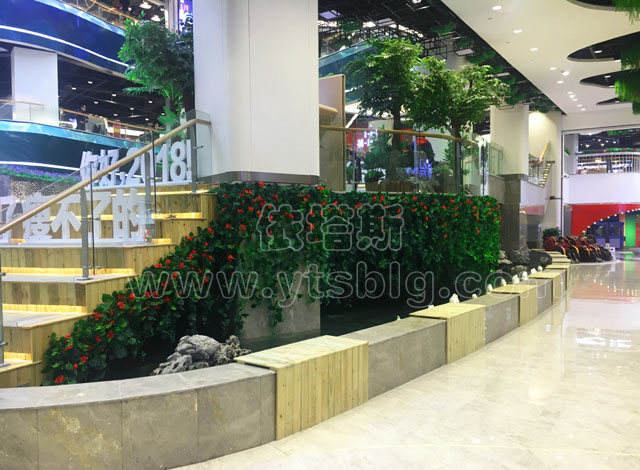 ? ? 整體色調(diào)以綠色為主,高品質(zhì)的仿真綠植給人清新的格調(diào)。放下工作,忘卻生活的煩惱,融入大自然的懷抱,給人舒適與愜意,這是該商場贏得客流量的重要原因。這樣的美陳不受季節(jié)限制,美陳時間相對較長,還可以根據(jù)主題添加相應(yīng)的裝飾,非常環(huán)保,是現(xiàn)在大型商場首選的裝飾方案。
