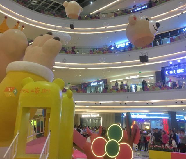 ? 這是依塔斯江蘇商場美陳的項目,玻璃鋼、亞克力、鐵藝、塑料材質(zhì)與燈光結(jié)合卡通動物王國設(shè)計主題,傾力打造而成的氣勢恢宏的夢幻開業(yè)美陳。江蘇商場在開業(yè)期間,根據(jù)自己的品牌文化特點設(shè)計的卡通動物王國的DP點美陳方案。是商場打造品牌形象做視覺營銷的最佳時機。開業(yè)慶典期間商場美陳裝飾布置的規(guī)模和氣氛,直接代表著江蘇商場的風(fēng)范及實力并吸引消費者眼球。