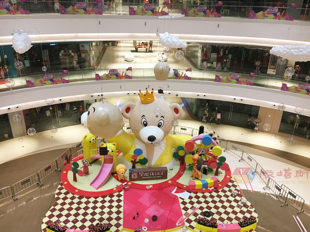 商場中庭DP點及吊飾打造夢幻開業(yè)美陳現(xiàn)場施工圖
