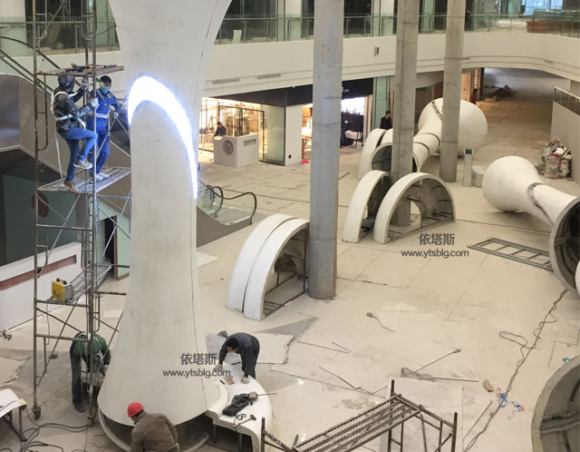 商場美陳裝飾柱現(xiàn)場施工