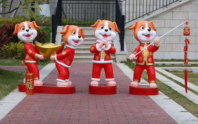 ? ? 2018年的春節(jié)即將到來,深圳依塔斯也開始制作玻璃鋼春節(jié)動物卡通狗美陳雕塑,卡通狗美陳雕塑其形態(tài)憨厚可愛,表面色澤亮麗,有新年旺旺的美好寓意,狗也是人類最忠實的朋友,是2018年春節(jié)最佳的美陳雕塑。