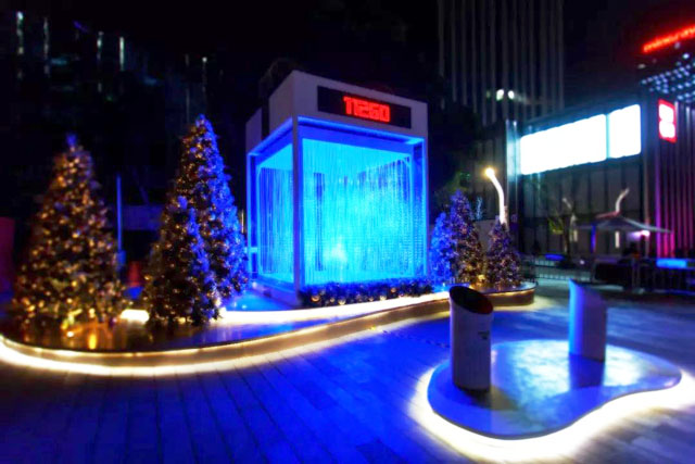 ? ? 美陳科技化——華潤萬象天地一直致力于通過引領(lǐng)性的藝術(shù)視角和高體驗(yàn)的空間裝置,為消費(fèi)者打造最具靈感與創(chuàng)意的高科技藝術(shù)空間。專為本次美陳打造的2個大型高科技“Gift Box”互動裝置——“隨你百分百”和“心跳百分百”,運(yùn)用了骨骼捕捉、實(shí)時感應(yīng)、燈光動畫特效等多項(xiàng)技術(shù)由音樂視覺藝術(shù)家,設(shè)計(jì)師和程序設(shè)計(jì)共同完成。