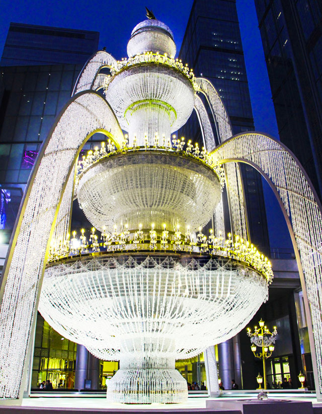 成都國際金融中心:浪漫法味圣誕季,成都國際金融中心選擇在古跡廣場上打造水晶噴泉,并于11月25日開啟圣誕前奏。30萬顆水晶、15米的高度……成都國際金融中心的“壕”氣再一次震驚了我們,晶瑩剔透的水晶、法式紅藍燈柱,在這個璀璨的光影世界,還有首次亮相中國的百年歷史傳奇咖啡館——花神咖啡(Café de Flore)挑動你的味蕾,這樣別具魅力的異國風情圣誕,值得體驗一把。