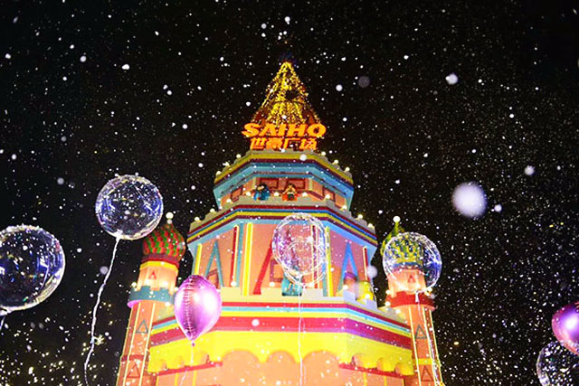 作為城南大源商圈“老”資格的購物中心,世豪廣場的圣誕美陳卻一點不顯old,而是和國際接軌,走異國風style。