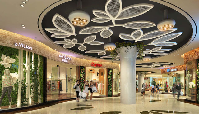 ? ? 商場,字面上是指聚集在一起的各種商店組成的市場,面積較大、商品比較齊全的大商店。由于商場內(nèi)各功能區(qū)域、樓層的受眾不同,商場軟裝、陳設(shè)應(yīng)該以統(tǒng)一商場氛圍,設(shè)計效果達到儼然有序,能激發(fā)消費者購買欲望為最終目標(biāo)。