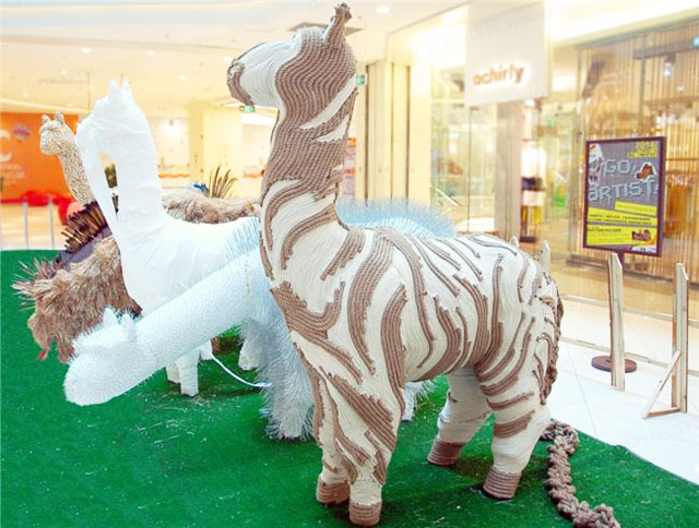 ? ? 然而,這些由泡沫塑料、樹脂材料、玻璃鋼、石膏等材料迅速搭建起來的“作品”,生命期非常短暫,短則幾天,長也不過數月。由于可回收利用的價值很低,大量的美陳材料被焚燒或丟棄。雖然對于搭建方來說,材料的成本已經回收,但對環(huán)境造成的污染和傷害仍然不可小覷。