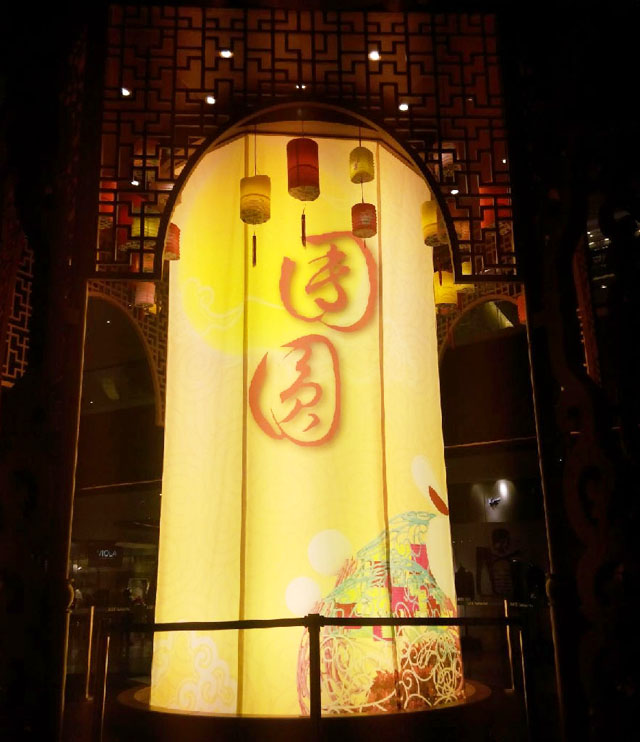 廣州太古匯以“團(tuán)圓”為主題,以嶺南風(fēng)格為靈感,以各款傳統(tǒng)燈籠作為點(diǎn)綴裝飾,營(yíng)造出古色古香的中秋氣氛。純中式的裝飾設(shè)計(jì),仿佛穿越到了古代,具有濃烈的節(jié)日氣息?!?/p>