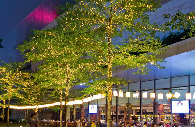 在L3花園,原本已經(jīng)點(diǎn)綴著星星燈的綠樹(shù)之間別具心裁地懸掛起一串串傳統(tǒng)燈籠,在天河商圈里增添一個(gè)傳統(tǒng)的賞月之地。溫馨的燈光在向每一個(gè)路過(guò)的人們傳達(dá)節(jié)日的問(wèn)候。