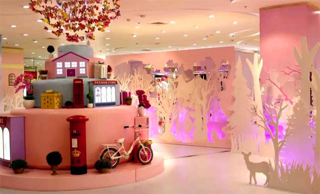 ? ? 目前,依塔斯商業(yè)美陳可以分為六大類型,除了空間維度上所指的室內和室外美陳之外,按照時間的維度來劃分,又可以分為節(jié)日、開業(yè)、日常以及季節(jié)美陳。在室內環(huán)境中,依塔斯商業(yè)美陳通過將不同季節(jié)的自然元素和色彩特點加入空間的裝飾,來改善空間形態(tài),令人們在購物同時也能感受到自然愜意的舒適。