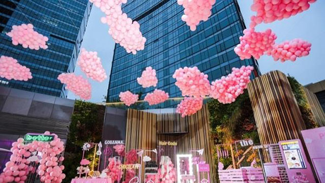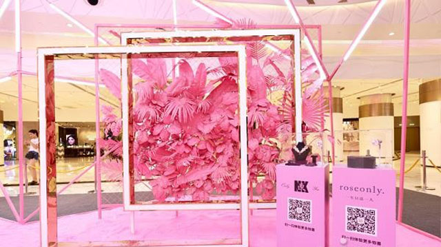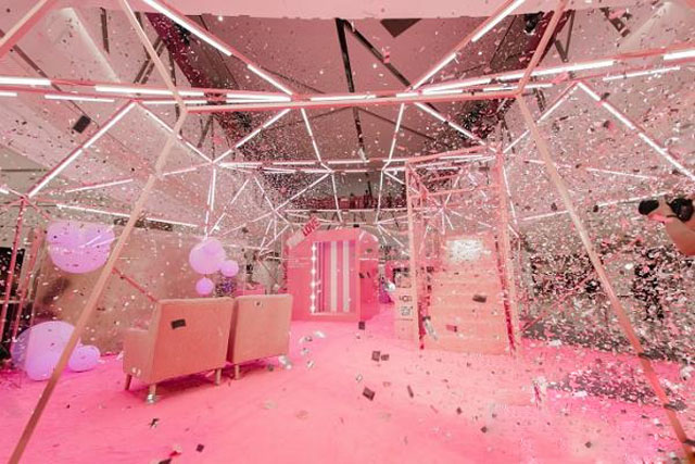 現(xiàn)場目之所及的主題裝置全部都是粉色系