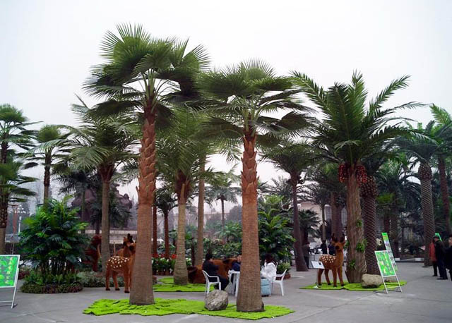 ? ? 優(yōu)質(zhì)的仿真棕櫚樹(shù)勢(shì)必會(huì)在視覺(jué)上起到突出的效果,提升整體的空間環(huán)境品質(zhì),美陳仿真棕櫚樹(shù)隨著人們審美要求的提高應(yīng)用范圍越來(lái)越廣泛。
