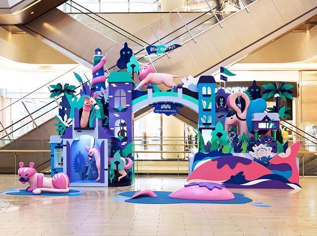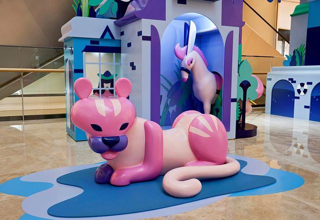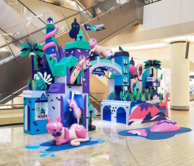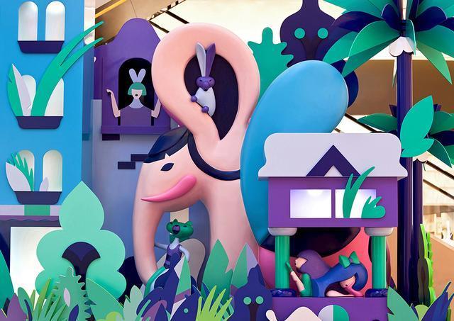 ? 兒童節(jié)商場美陳設(shè)計方案二:卡通動物是其中亮點(diǎn),造型結(jié)合彩繪賦予其生命力,栩栩如生。城堡門頭造型、椰樹、動物等元素,展現(xiàn)商場卡通森林動物王國DP點(diǎn)美陳。