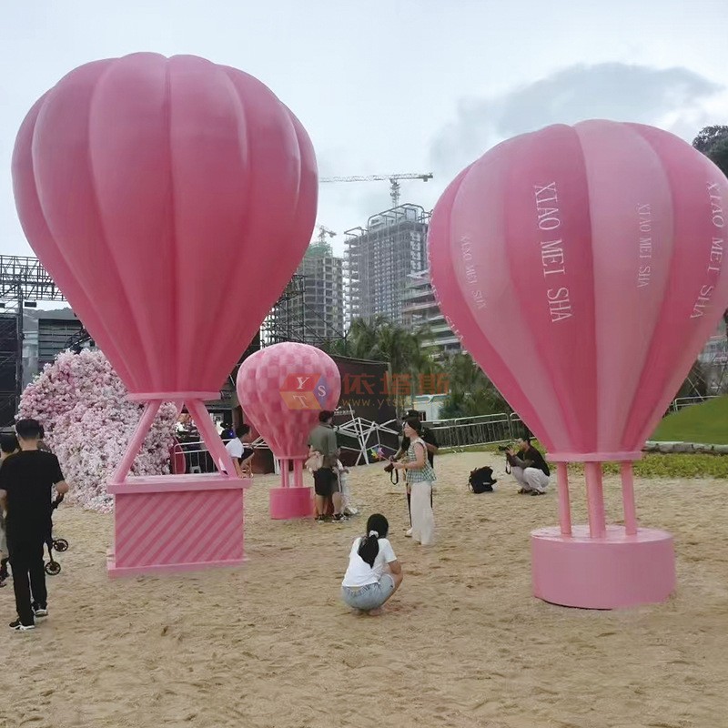 此款雕塑以夢幻可愛的熱氣球為造型,通體采用溫柔靚麗的粉色系,不僅瞬間喚醒您的少女心,更能輕松營造溫馨、甜蜜與歡樂的氛圍。無論是置于金色沙灘、碧綠草坪,還是庭院一角、商場中庭,它都能成為一道引人駐足的亮麗風(fēng)景線。