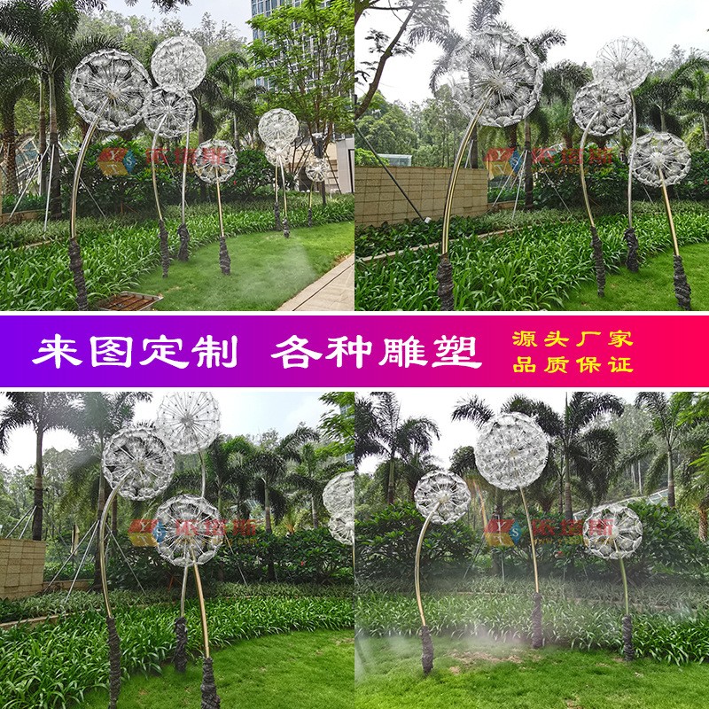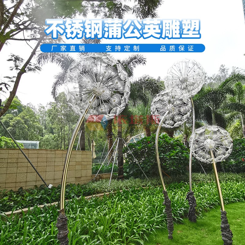 ? ? ?在城市的公園,或是在靜謐的庭園一隅,你或許曾與它不期而遇——一株由金屬鍛造的蒲公英。它并非生長于泥土,而是植根于現(xiàn)代工業(yè)的精密與冷峻之上。無數(shù)不銹鋼鏡面打磨的種子,被纖細(xì)而堅(jiān)韌的金屬莖稈托舉著,匯聚成一朵完美的、即將飛散的球形。這不再是記憶中那個(gè)一吹即散、柔弱不堪的童年意象,而是一件融合了自然靈感與工業(yè)美學(xué)的雕塑作品,一種凝固于時(shí)間之外的永恒姿態(tài)。