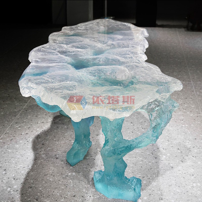 ? ? ? ? 它靜立在客廳一隅,卻仿佛將一整塊極地冰川私藏于方寸之間。這不是普通的桌子,而是一件用透明樹脂仿冰川色澤與肌理雕琢而成的藝術(shù)品,是凝固的極地時光,也是現(xiàn)代家居中一座微縮的永恒冰山。
