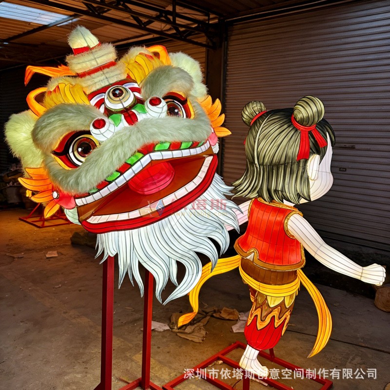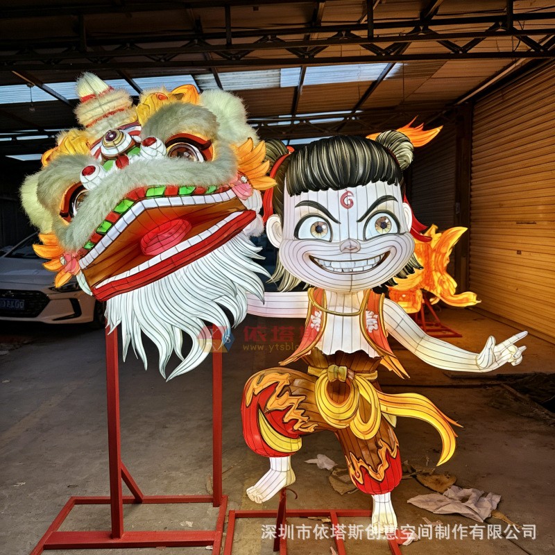 ? ? ? ? ?正當(dāng)你沉醉于這靜止的輝煌,一陣鏗鏘的鑼鼓猛地撞破光影的靜謐。人群如潮水般向兩側(cè)分開(kāi),不是常見(jiàn)的金毛紅額的南獅,而是一頭前所未見(jiàn)的“獅子”——通身環(huán)繞著火焰紋的綢緞,頸上懸著光華熠熠的乾坤圈,獅頭上那雙炯炯有神的大眼,分明燃燒著三分不羈與七分叛逆。是哪吒。不是端坐蓮臺(tái)的神祇,而是踏著風(fēng)火輪、舞動(dòng)混天綾的那股永不服輸?shù)木?,此刻竟與奔騰咆哮的瑞獸合二為一。