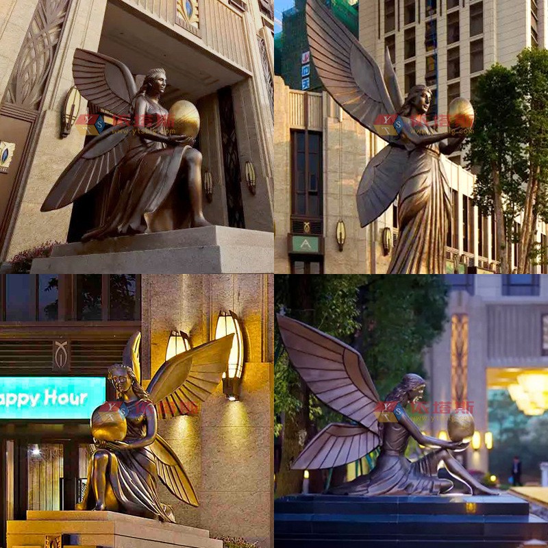 4.仿銅效果的藝術(shù)呈現(xiàn)——核心工藝:這是賦予雕塑青銅般靈魂的關(guān)鍵。工匠運用專業(yè)的仿古銅色漆料,通過多次噴涂、擦色、暈染等手法,模擬出自然青銅的基底色澤。隨后,通過手工打磨、點染化學藥劑(如做舊劑)或干掃金粉、銀粉等特殊技法**,在女神像的衣裙高處、肌膚隆起處“提亮”,在低凹處、褶皺深處“做舊”,營造出歷經(jīng)歲月洗禮而產(chǎn)生的自然磨損、綠銹(銅綠)或黑銹效果。高超的技藝能使仿銅效果幾乎亂真,呈現(xiàn)出深邃而富有層次感的金屬質(zhì)感與歷史韻味。
